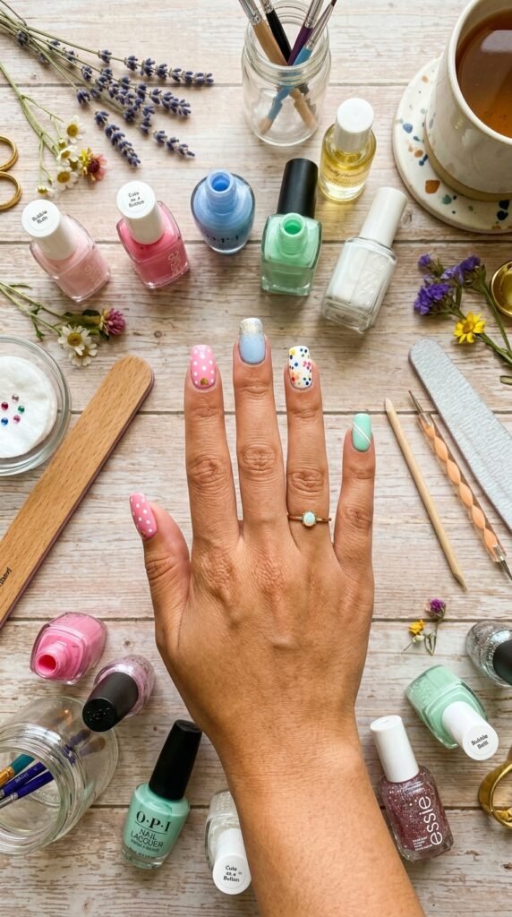 • Nail polish: A few colors of your choice. A neutral base and 2–3 fun shades work well.