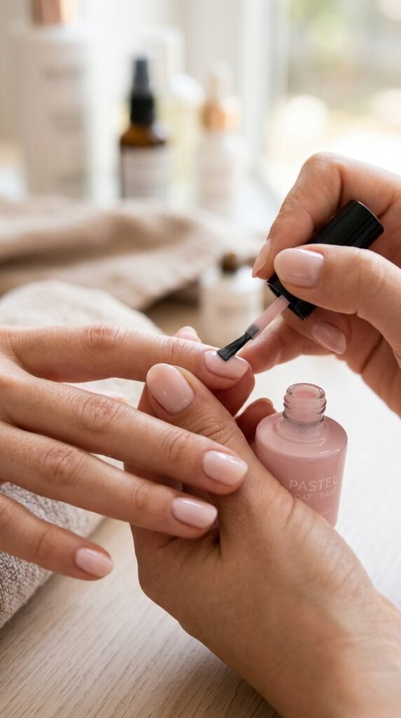 Apply a base coat to protect your nails and create a smooth surface. This step is simple but makes a big difference.