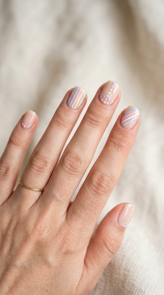 Simple nail patterns can look just as stunning as complex designs. With dots, stripes, and small shapes, you can create endless combinations that match your mood, outfit, or occasion.